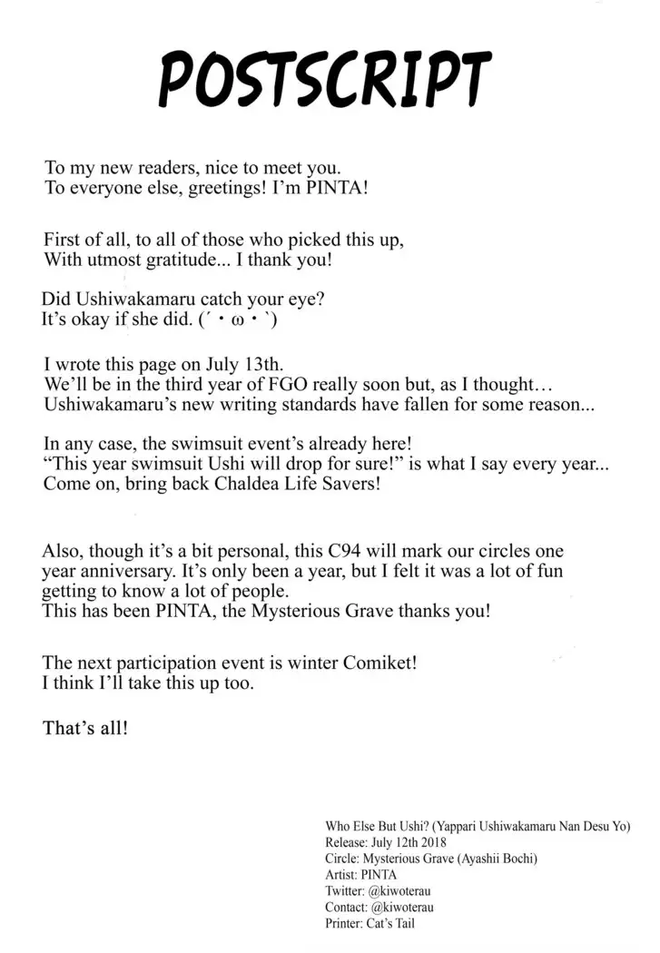 (C94) [Ayashii Bochi (PINTA)] Yappari Ushiwaka nandesu yo ne (Fate/Grand Order)