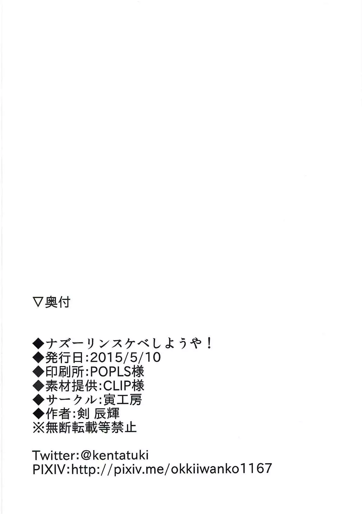 (Reitaisai 12) [Tora Koubou (Ken Tatuki)] Nazrin Sukebe Shiyouya! (Touhou Project)
