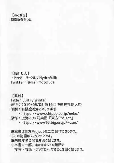 Sultry Winter Hentai Porn (例大祭16) [HydroMilk (トゥダ)] Sultry Winter (東方Project)